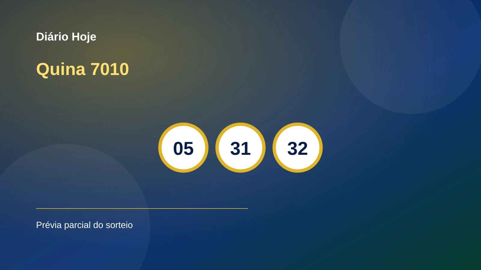 - O concurso 7010 da Quina teve resultado atualizado com 05, 31, 32, 35, 47.